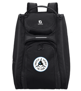 Our huge 53-Litre Volume bag can store all of your kit. It features a carrying handle at the top and front, but it can also be worn as a backpack. The shoulder straps have two D-rings and a chest strap for more stability while on the road. Two large zippered side pockets, one of which is insulated for cold drinks and food. Large u-shaped zipper for faster and easier packing. Ventilated shoe/towel pocket. Zippered top pocket with key chain hook. One hidden security pocket behind the shoulder straps and one large mesh pocket. Includes reflective details.